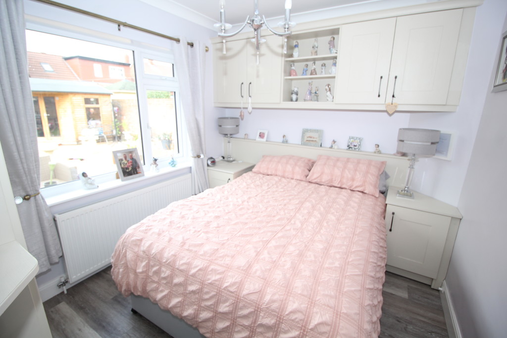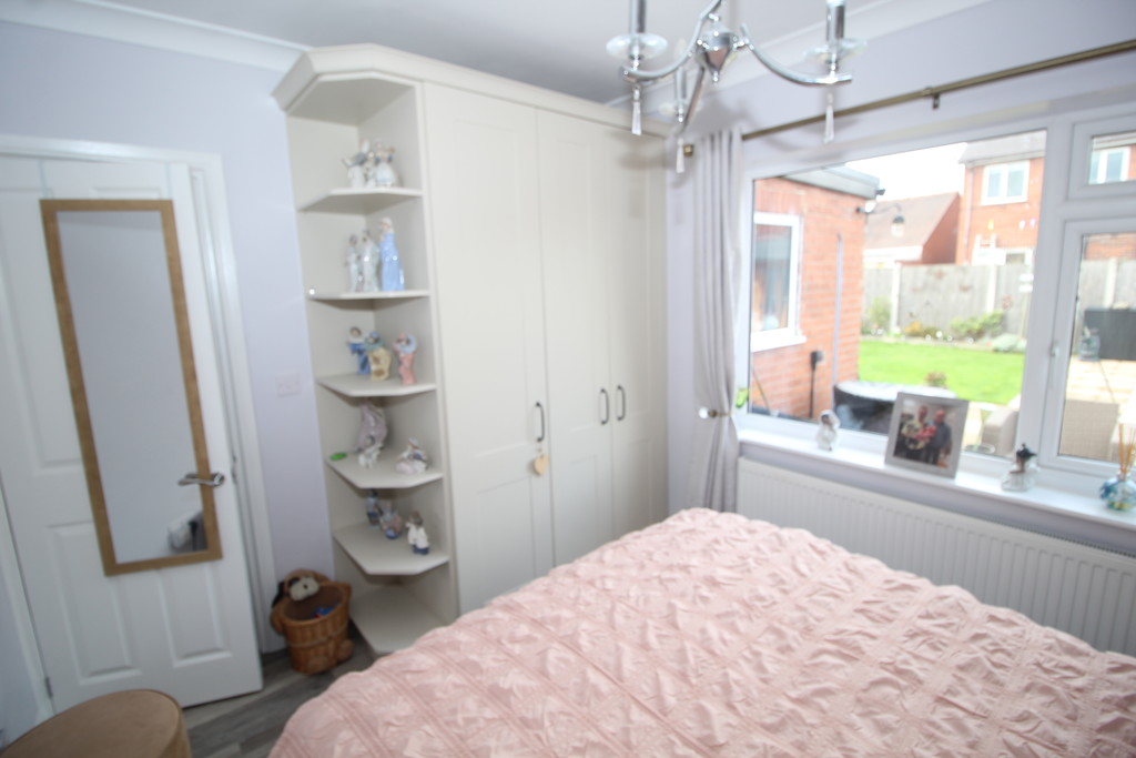 BEDROOM ONE 10' 11" x 8' 11" (3.33m x 2.72m) Having fitted wardrobes and overhead storage cupboards, central heating radiator, double glazed window with pleasant aspect over looking rear garden, LVT flooring.