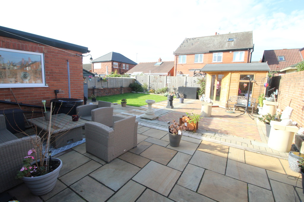 EXTERIOR The property stands on this popular road, having block paved driveway to front providing off street parking, lawn garden to front with broken slate boarders, Indian stone path to front door, Garage store having electric power and light, gated access leads to a nice size well maintained rear garden, having Indian stone patio with sleeper edging, block paved patio, lawn garden with planted beds, corner summerhouse with electric power and light.