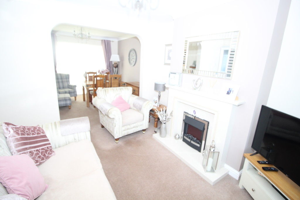 LOUNGE 9' 10" x 11' 7" (3m x 3.53m) A nice size room, having double glazed window letting in plenty of natural light, inset electric fire with modern limestone back, hearth and surround, central heating radiator, TV & telephone point and archway to:
