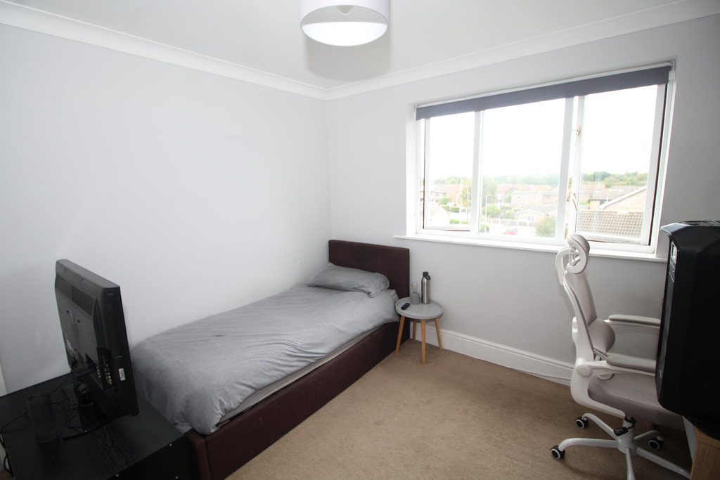 BEDROOM TWO 11' 6" x 11' 1" (3.51m x 3.38m) A rear facing bedroom having double glazed window with open rooftop views, letting in plenty of natural light and a central heating radiator.
