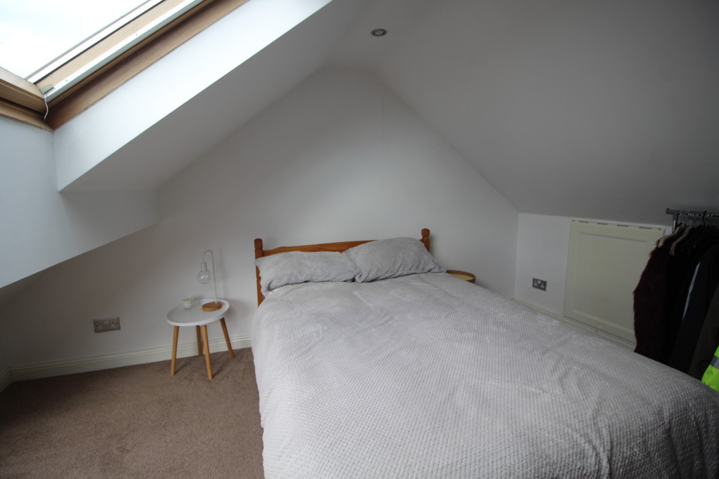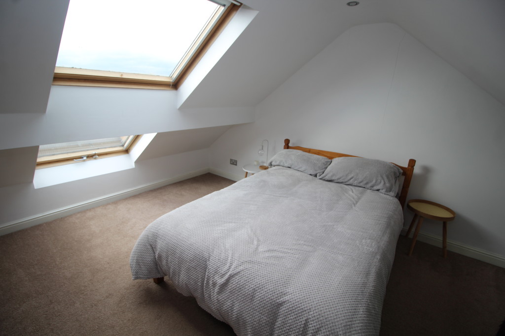 BEDROOM THREE 12' 3" x 9' 5" (3.73m x 2.87m) A nice size room having two Velux windows with open aspect over rooftops, central heating radiator and under eves storage.