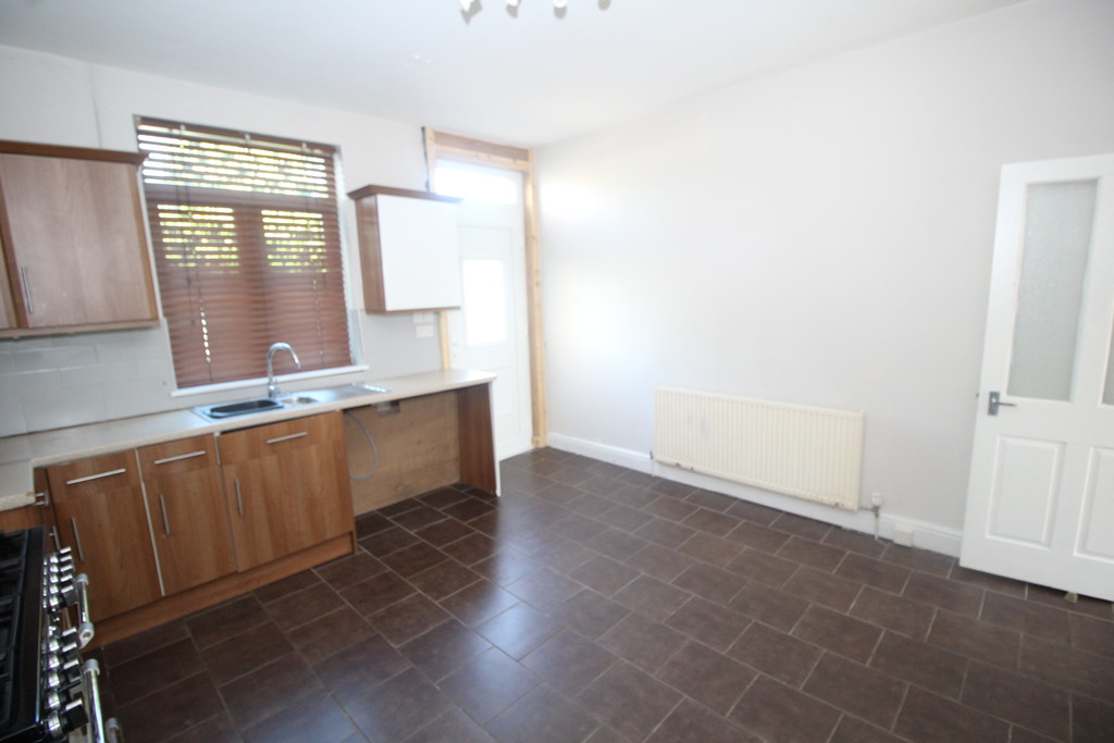 DINING KITCHEN 13' 0" x 13' 3" (3.96m x 4.04m) A good size room, having a range of Cherry wood effect wall and base units with Rod handles, work surface incorporating sink and drainer with mixer tap, tiled splash backs, space and gas for a range cooker, tiled floor, central heating radiator, double glazed window, access to cellar and rear access door.
