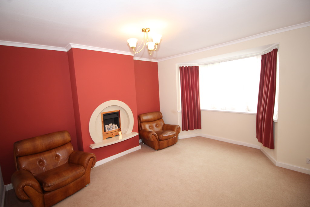 LOUNGE 14' 1" x 11' 11" (4.29m x 3.63m) A front facing room having inset living flame gas fire with back hearth and surround, double glazed bay window letting in plenty of natural light, central heating radiator, TV point and telephone point.