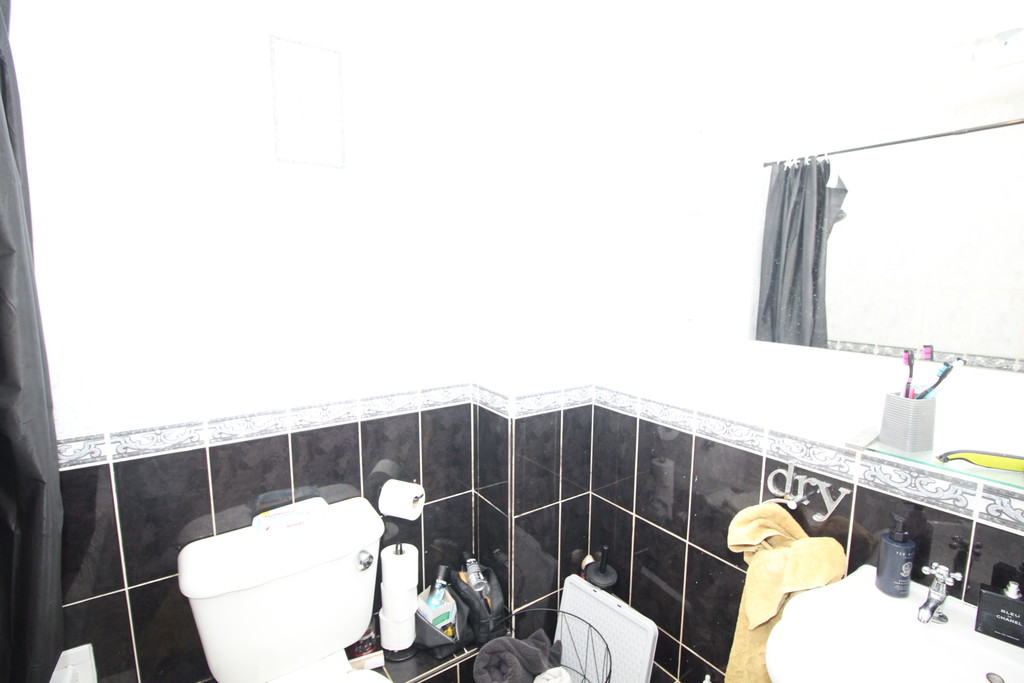 BATHROOM 7' 3" x 6' 0" (2.21m x 1.83m) Predominantly tiled, having a white three-piece suite comprising; low flush WC, pedestal hand basin, panel bath with electric shower over and extractor fan.