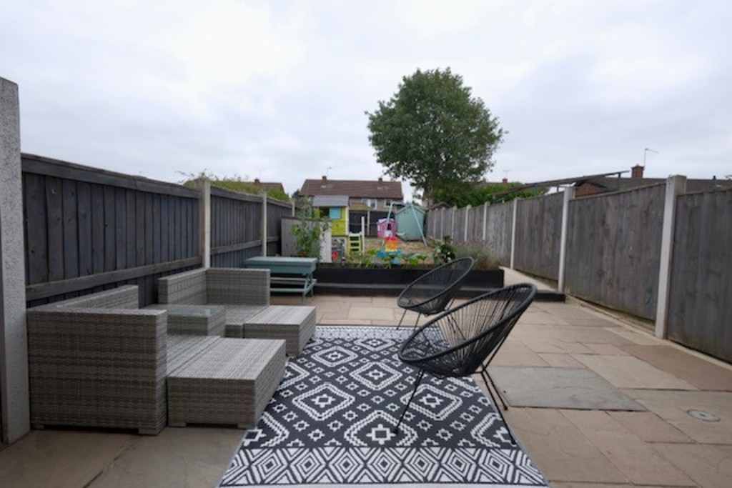 EXTERIOR The property stands on this popular cul-de-sac of similar properties, having double width tarmac driveway with wrought iron gates providing off street parking, whilst to the rear there is a good size enclosed garden having stone patio and lawned garden.